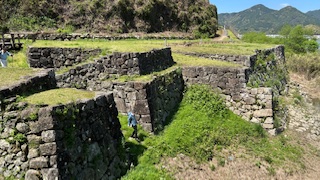 新宮城 その2 2026年4月23日 新宮城の1番の特徴は城内に「水ノ手郭があること。 熊野川に面した場所に石垣が築かれていて、船着場があります。 熊野川の上流からは豊富に取れる木材を運び、ここを治めていた水野家が専売にしていた備長炭を江戸に送っていました。 ここからの炭で江戸の人達の多くが煮炊きをしたり、暖を取ったりしていたわけで 言わば、この地は江戸のエネルギー源だったわけです。 船着場の石垣!凄いでしょ 春風亭昇太